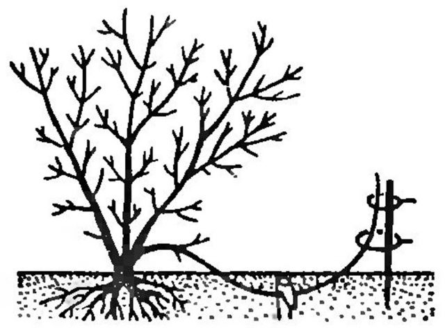 Es ist noch einfacher, den japanischen Gast mithilfe von Ebenen zu verbreiten. In diesem Fall ist es zwar schwierig, viel Pflanzenmaterial zu erhalten. Im Frühjahr, wenn die Triebe nachwachsen, werden mehrere Äste auf den Boden gelegt, mit Erde bestreut und mit einem Stein oder Draht befestigt. Die Spitze des Triebs sollte sichtbar sein - oft ist ein Stift daran gebunden. Bei regelmäßiger Bewässerung der gelegten Triebe wurzeln sie bis zur nächsten Saison problemlos.