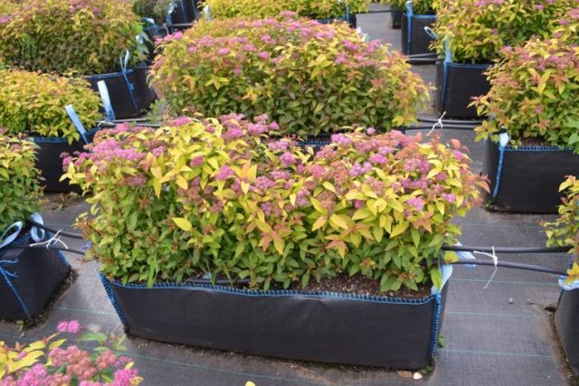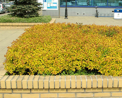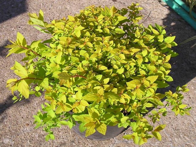 - im Sommer ändert Spirea seine Farbe in Goldgelb, wenn es in offenen, gut beleuchteten Bereichen gezüchtet wird;