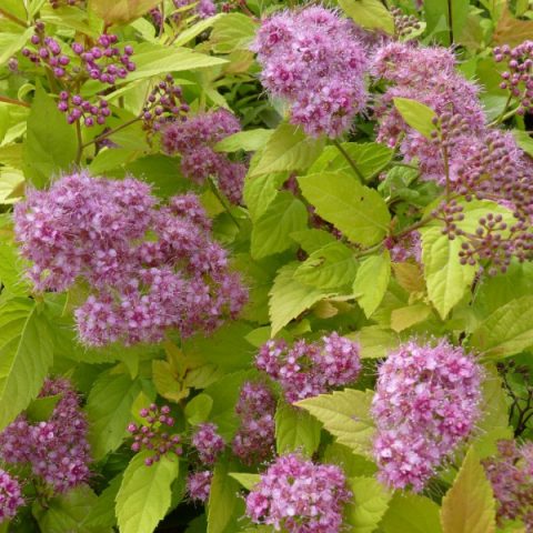 Spirea Goldmound ist eine nicht launische kältebeständige Pflanze, die selbst ein Hobbygärtner anbauen kann. Die Strauchpflege reduziert sich auf die grundlegendsten Verfahren, und die vielseitige, abgerundete Form der Spirea ermöglicht es Ihnen, sie mit vielen anderen Gartenbaukulturen zu kombinieren. Insbesondere die Sorte Goldmound sieht in Kombination mit Nadelsträuchern und Bäumen gut aus.