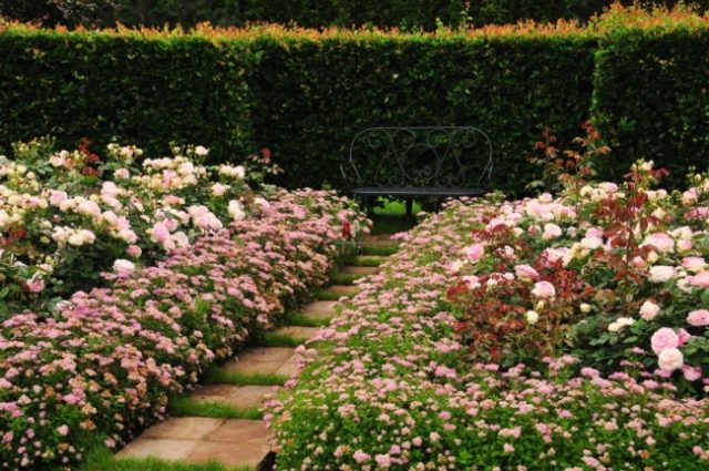 Die japanische Spirea der Sorte Jenpei Shirobana im Landschaftsdesign wird verwendet, um eine einheitliche Hecke zu bilden, Bordsteine zu kanten und Hänge zu dekorieren. Der Strauch wird auch mit anderen Sorten bepflanzt, um spektakuläre Gruppenzusammensetzungen zu schaffen. Aufgrund der Tatsache, dass verschiedene Sorten zu unterschiedlichen Zeiten blühen, erstreckt sich die Dekorativität solcher Blumenbeete über die gesamte Saison.