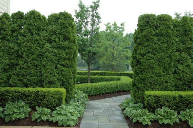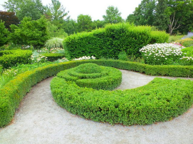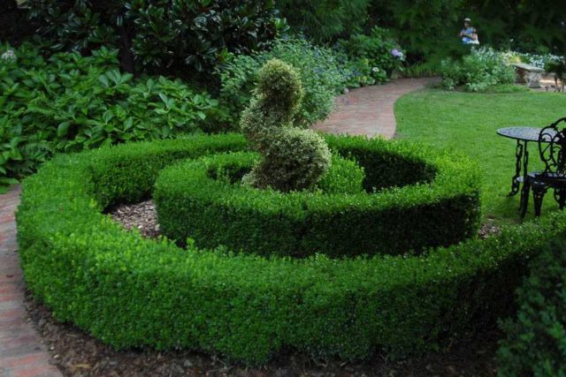 Eine Hecke aus Buchsbaum wird sicherlich zu einer der ursprünglichen Dekorationen des Geländes. Es wird dazu beitragen, das Territorium in Zonen zu unterteilen, es vor ungebetenen Blicken zu schützen und mehr als einer Generation der Familie zu dienen.