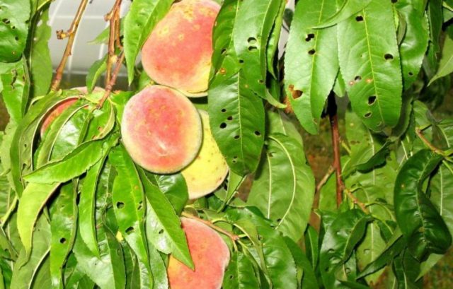 Clasterosporium ist eine weit verbreitete Pilzkrankheit. Die Krankheitsaktivität wird zweimal im Jahr beobachtet. Die Primärinfektion tritt im zeitigen Frühjahr auf, wenn überwinternde Sporen beginnen, den Pfirsich mit neuer Kraft anzugreifen. Wenn das optimale Temperatur- und Feuchtigkeitsregime erreicht ist, treten die ersten Anzeichen der Krankheit auf. Auf jungen Blättern erscheinen purpurrote Flecken, die mit der Zeit wachsen. Ein Teil des Blattes stirbt ab, fällt ab und bildet kleine Löcher in der Blattplatte.