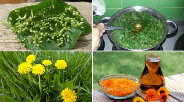 - Löwenzahn, 1 kg Blätter wird mit 3 Litern Wasser gemischt, drei Tage lang darauf bestanden;