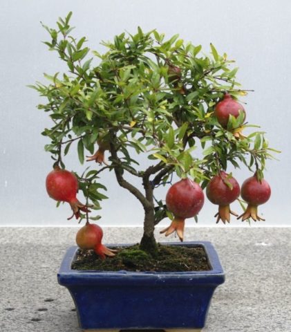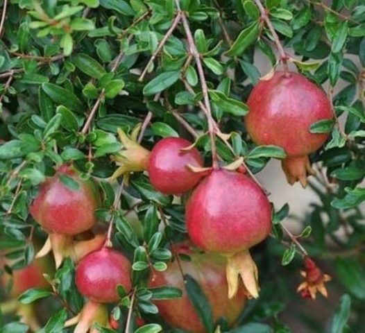 Von außen sieht die Zwergsorte wie eine verkleinerte Kopie eines Gartenbaums aus. Nana Granatapfel ist bei Hobbygärtnern wegen seines unprätentiösen Inhalts und seines schönen Aussehens beliebt.