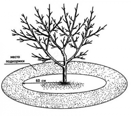 Im Herbst wird der Stammkreis von abgefallenen Blättern und Unkraut befreit. Während des flachen Grabens werden Mineraldünger auf den Boden ausgebracht. Vor dem Einsetzen des Frosts wird die letzte (feuchtigkeitsaufladende) Bewässerung durchgeführt.