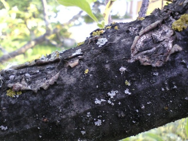 Schwarzer Krebs befällt Blattplatten, Triebe und Früchte. Um es loszuwerden, muss die betroffene Rinde entfernt werden, der Stamm muss mit Gartenpech behandelt werden. Ganze Triebe werden mit Kupfersulfat besprüht.