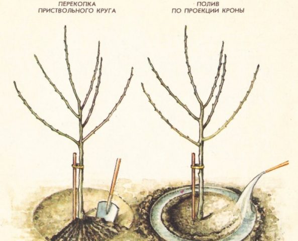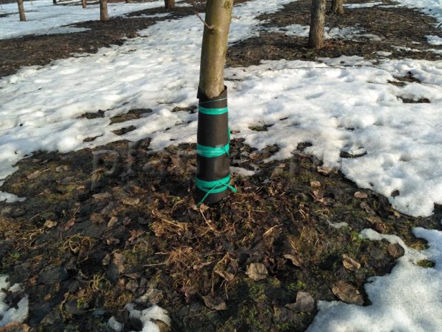 Zur Prophylaxe gegen Nagetiere wird der Stamm mit einem Netz oder einem beliebigen Abdeckmaterial umwickelt. In Vorbereitung auf den Winter des Sämlings werden seine Zweige gebunden.