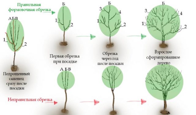 - Zweige mit Anzeichen der Krankheit, die ausgetrocknet sind oder im rechten Winkel wachsen, werden notwendigerweise entfernt.