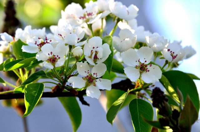 Die Birne benötigt Bestäuber, um Eierstöcke zu bilden. Wählen Sie zum Pflanzen gleichzeitig blühende Sorten. Über den Bestäubungsprozess in anderen Faktoren: warmes Wetter, Regenmangel, Kälte und Hitze. Die Birne wird auf einem Grundstück im Abstand von 3 - 4 m gepflanzt. Wenn nicht mehrere Bäume platziert werden können, wird ein widerstandsfähiger Bestand gewählt. In die Krone werden verschiedene Sorten gepfropft.