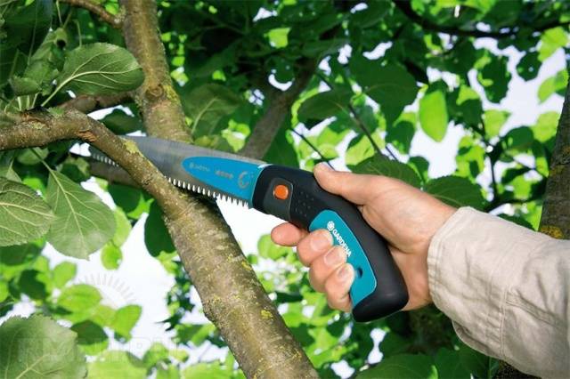 Die Schnitte und Schnitte sollten gleichmäßig sein, daher wählen wir scharfe Werkzeuge, damit sich die Rinde und das Gewebe des Apfelbaums entlang der Kante des Sägeschnitts nicht ausbeulen und ablösen. Dies kann zu Eitern führen. In diesem Fall heilt die Wunde lange Zeit nicht.