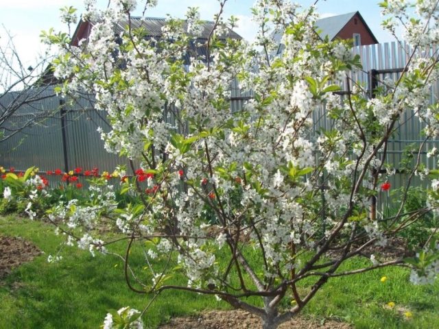 Die Pflege eines Kirschbaums im Fruchtalter ist ganz einfach - zwei Quellgüsse mit 50-70 Litern Wasser reichen aus. Zum ersten Mal wird der Baum vor dem Knospenbruch bewässert und zum zweiten Mal - am Ende der Blüte.