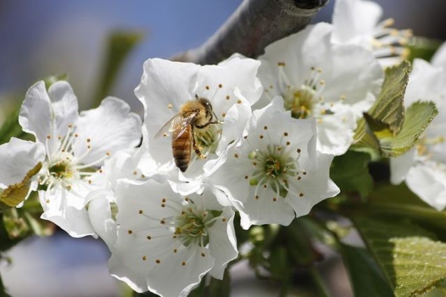 Während der Kirschblütenzeit im Frühjahr ist zu beachten, dass Hummeln und Bienen eine wichtige Rolle bei der Bestäubung spielen. Um sie in maximaler Menge in den Garten zu locken, werden Minze, Lungenkraut, Zitronenmelisse und andere wohlriechende Pflanzen in der Nähe der Kirschen oder in den Gängen gepflanzt.