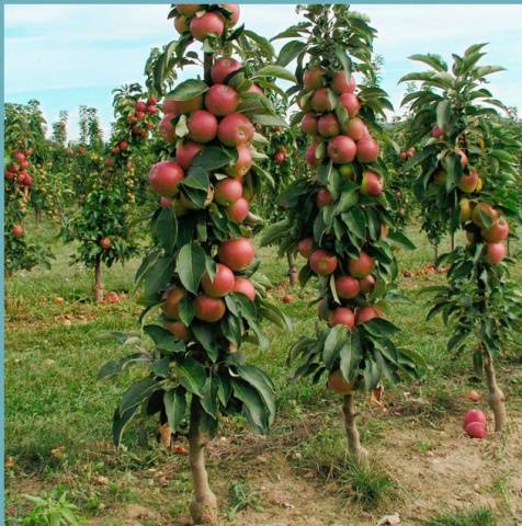 Säulenapfelbäume - niedrige Miniaturbäume, die zwei Jahre nach dem Pflanzen Früchte tragen. Solche Apfelbäume sind berühmt für ihre hohen Erträge und nehmen vor allem nicht viel Platz im Garten ein.