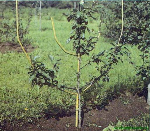 Bei Zwergapfelbäumen verkürzt sich im zweiten Jahr das Wachstum des zentralen Sprosses für jede Art von Krone um ein Drittel und bei neuen Skelettästen um die Hälfte.