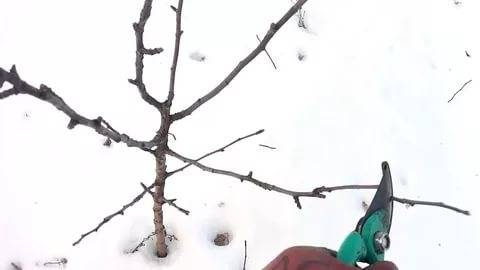 Der erste Schnitt eines Zwergapfelbaums nach dem Pflanzen ist wichtig, um die weitere Fruchtbildung anzuregen. Es sollte unmittelbar nach dem Pflanzen des Sämlings im Frühjahr durchgeführt werden, wenn die Knospen noch nicht aufgewacht sind. Der Sämling benötigt mehr Nahrung, um den Stress nach dem Umpflanzen abzubauen und sich so schnell wie möglich zu etablieren. Das Beschneiden stimuliert es nur für eine schnelle Entwicklung und verhindert, dass es Energie für das Wachstum unnötiger Triebe verbraucht.