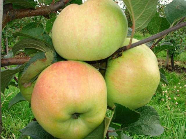 Diese einzigartigen Äpfel reifen Mitte Oktober. Der Ernteertrag ist durchschnittlich, die Schmackhaftigkeit der Früchte ist ausgezeichnet: Große Früchte sind sehr saftig und süß und werden unter besonderen Bedingungen 6-7 Monate gelagert.