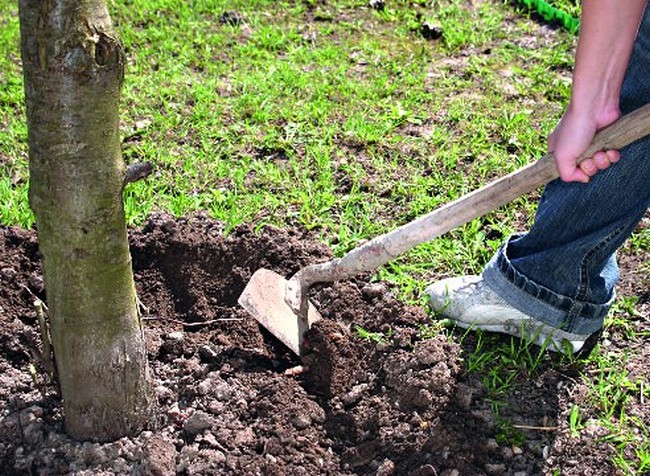 - Pflaumenpflege im Herbst beinhaltet Mulchen... Nach dem Gießen und Düngen wird der Boden um den Stamm der Pflaume gemulcht - das heißt, mit einer Schicht Mulch bestreut, in mehreren Schichten mit Sackleinen bedeckt und dann mit etwas Erde versetzt. Das Mulchen isoliert die Wurzeln, hält die Feuchtigkeit den ganzen Winter über in ihnen und verhindert, dass das Wurzelsystem gefriert.