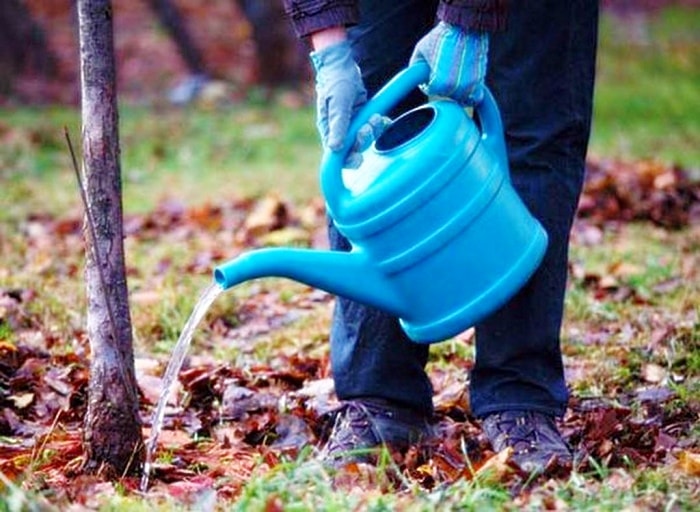 - Bewässerung. Vor Beginn des Winters muss genügend Feuchtigkeit unter den Stamm der Pflaume gebracht werden, damit die Pflanze den Winter überleben kann. Die Wassermenge wird je nach Boden bestimmt. Befindet sich das Grundwasser nahe an der Oberfläche, muss der Boden um den Stamm herum mit einem Meter tiefem Wasser gesättigt werden. Wenn der Boden trocken genug ist, dann zwei Meter tief. Die Bewässerung vor dem Winter erfolgt vor dem Eintreffen des Frosts, jedoch nachdem die Blätter gefallen sind und vorausgesetzt, dass es im Herbst wenig geregnet hat.