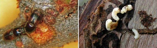 Faltiges Splintholz | Bewegungen in der Rinde, Tod von Trieben | Insektizide | Beschädigte Rinde entfernen |