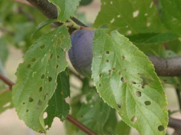 Clasterospirose - eine schwere Krankheit, der Hauptschädling der Eierpflaume. Die Krankheit manifestiert sich durch das Auftreten roter Flecken auf der Oberfläche der Blätter. Im Laufe der Zeit verwandeln sie sich in Löcher. Die Besonderheit der Clotterospirose ist, dass sie sich schnell im Garten ausbreitet. Fungizide helfen, damit umzugehen. Sie müssen regelmäßig geändert werden.