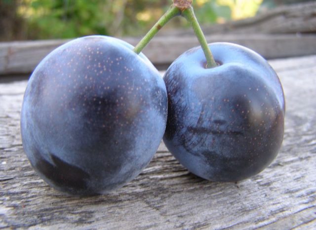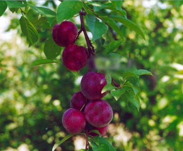 - Pflaumen-Kirsch-Hybride Sapalta - mittelhohe Sorte mit abgerundeter Krone, erhöhter Frostbeständigkeit, mit lila süßen Früchten.