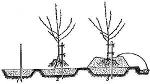 Bereiten Sie die Grube mindestens zwei Wochen im Voraus für die Herbstpflanzung und ab Herbst für die Frühjahrspflanzung vor. Der Boden im Loch sollte so verdichtet werden, dass sich keine Luftblasen im Boden befinden, in denen sich die Wurzeln des Sämlings nicht entwickeln können. Aus dem gleichen Grund müssen Sie den Apfelbaumsämling beim Pflanzen leicht schütteln und seine Wurzeln mit Erde bedecken. Es ist sehr wichtig, dass Düngemittel zum Zeitpunkt der Frühjahrspflanzung bereits gut von den Pflanzen aufgenommen werden können. Einige von ihnen, insbesondere Phosphorsäure, lösen sich langsam auf. Daher ist es besser, den Nährboden für das Füllen des Lochs im Voraus vorzubereiten.