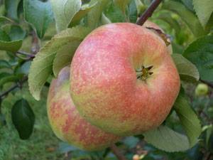 Die Apfelform ist typisch für Calvilles. Sie sind flach rund, haben eine breite Basis und eine Spitze, auf denen Rippen deutlich sichtbar sind. Rost nimmt nicht nur den gesamten Trichter ein, sondern geht oft über seine Grenzen hinaus.