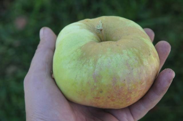Die Größe der Frucht ist beeindruckend und rechtfertigt den Namen der Sorte. Selbst das durchschnittliche Gewicht von Äpfeln liegt zwischen 150 und 200 g. Die größten Exemplare wachsen bis zu 400 g.