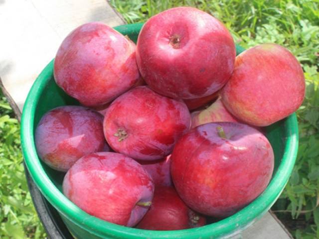 Die Früchte des Kovalenkovskoe-Apfelbaums reifen groß (einige haben eine Masse von ca. 210 g) und haben eine regelmäßig abgerundete Form (wie auf dem Foto).