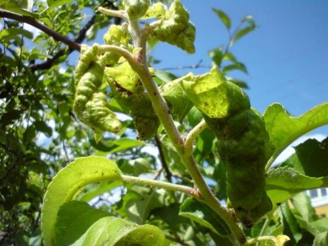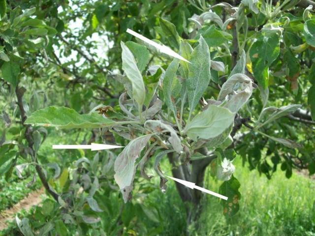 - Fruchtmilbe. Der Schädling saugt die Säfte aus den Blättern des Apfelbaums, wodurch seine Immunität gegen Krankheiten und Erkältungskrankheiten abnimmt.