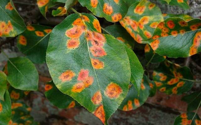 - Rost. Die Läsion erscheint auf den Blättern und ist braune Flecken mit schwarzen Flecken. Der Pilz breitet sich zu Trieben und Früchten aus. Eine Lösung von Kupferoxychlorid wird gegen Rost verwendet.