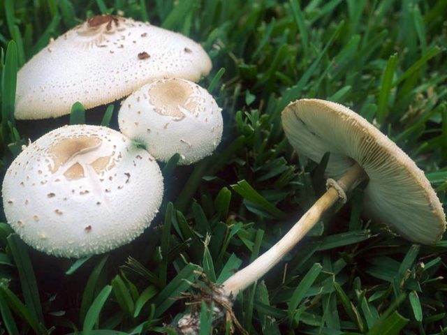 Belochampignon ruddy wird oft mit seinem engsten Verwandten verwechselt - Feldchampignon (Agaricus arvensis). Es ist ein Speisepilz mit ausgezeichnetem Geschmack. Es wächst von Mai bis November auf Weiden, Waldrasen, neben Ställen, für die es den populären Namen "Pferdepilz" erhielt. Sie können Wiesenchampignon an der Größe der Kappe (sie erreicht 15 cm), der Farbe des Fruchtfleisches (sie wird beim Schnitt schnell gelb) und an den rosa Platten an der Unterseite der Kappe unterscheiden.