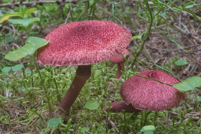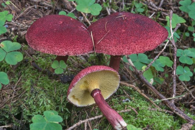 Wenn der Pilz gebrochen ist, nimmt das Fleisch eine tiefrote Farbe an.