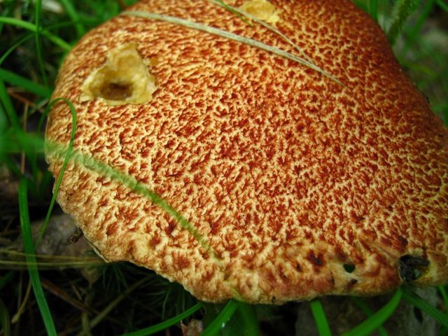 Boletin Sumpf... Bedingt essbar. Es zeichnet sich durch eine weniger kurz weichhaarige Kappe, einen schmutzigen rosa Schleier und ein großporiges Hymenophor aus.