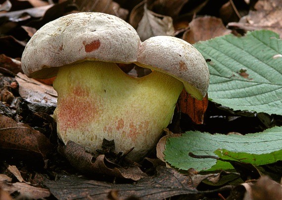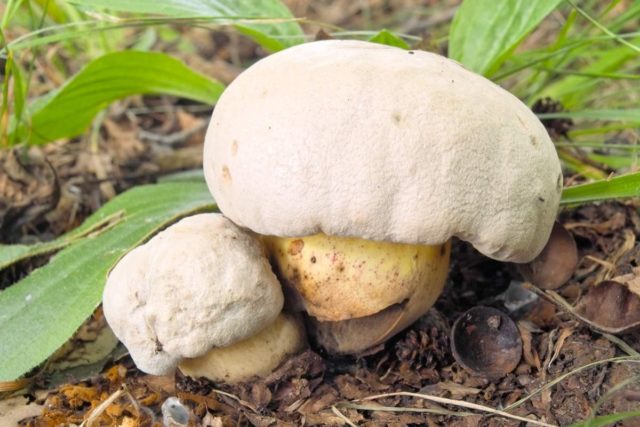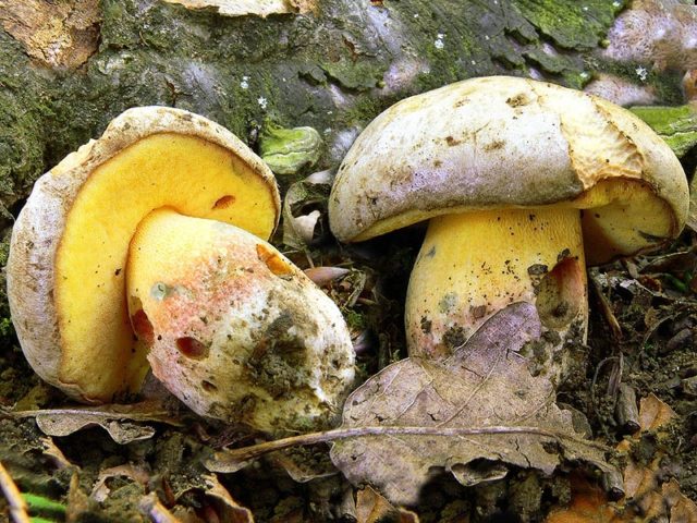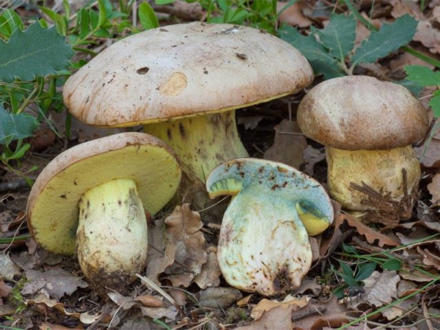Wurzelboletus... Ungenießbar, aber auch nicht giftig. Das Fruchtfleisch ist sehr bitter, absolut ungeeignet zum Kochen. In seiner Erscheinung ist es Fechtners Steinpilz sehr ähnlich. Es hat eine ähnliche halbkonvexe Form, einen knollenförmigen Stiel und eine gelbe sporentragende Schicht.Sie können es an der Farbe der Kappe unterscheiden: Sie ist heller mit einem grünlichen, bläulichen oder grauen Farbton an den Rändern.