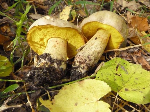 In der Pause ändert das Fleisch des gelben Steinpilzes keine Farbe