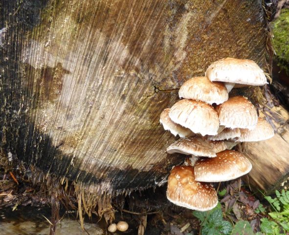 - Schuppe golden... Ein essbares Exemplar. Der Durchmesser der breit glockenförmigen Kappe aus rostiger Zitrone beträgt 18 cm, die Oberfläche ist mit großen rötlichen Schuppen bedeckt. Saftiges Fleisch von heller Cremefarbe. Zitronenbrauner Stiel, 10 cm hoch, bedeckt mit zahlreichen orange-braunen Schuppen. Es wächst in Familien auf Laubbaumstämmen oder auf ihren Rhizomen. Die Fruchtbildung erfolgt von August bis Oktober.