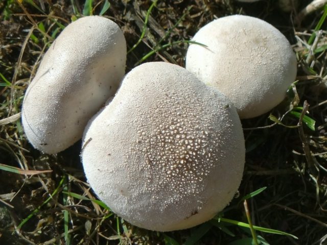 In seiner Erscheinung ähnelt der Wiesenregenmantel einem Champignon. Der Unterschied liegt in der voluminösen Kappe. Im Laufe der Zeit kann sich die Farbe des Pilzes gelblich ändern. Auf der Oberfläche der Spitze bilden sich Spitzen. Starke Regenfälle tragen jedoch zu ihrem Verschwinden bei.