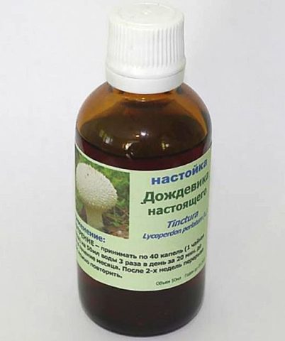Für medizinische Zwecke wird ein Wiesenregenmantel in einer Vielzahl von Formen verwendet. Besonders beliebt ist die Pilztinktur. Es wird dreimal täglich vor den Mahlzeiten eingenommen. Eine Einzeldosis beträgt 40 Tropfen. Die Vorteile der Tinktur aus einem Wiesenregenmantel sind folgende: