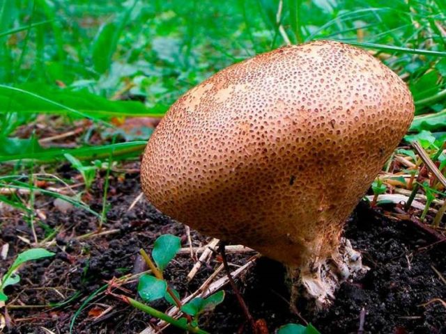 Dieser Pilz hat auch eine für Regenmäntel charakteristische Struktur - der Fruchtkörper hat keine ausgeprägten Beine und Kappen, sondern ähnelt in Form und Größe eher einer länglichen Kartoffel. Der warzige falsche Pilz im oberen Teil ist mit charakteristischen Wucherungen bedeckt, die nicht Dornen, sondern Warzen ähneln. Es wird nicht in Lebensmitteln verwendet, ist leicht giftig und kann Übelkeit und Magenschmerzen hervorrufen.