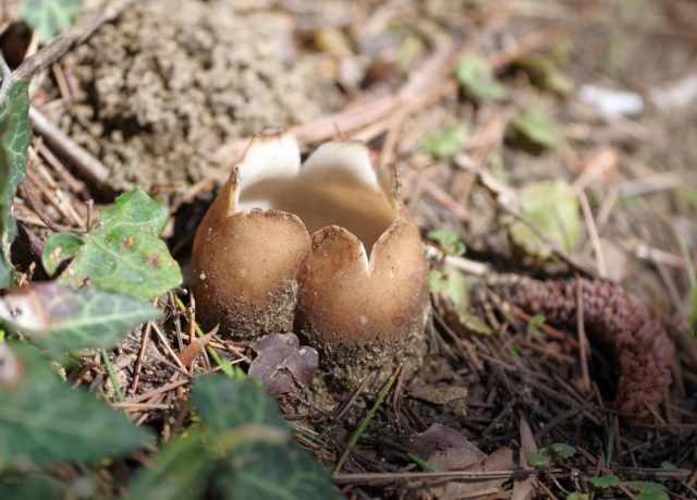 Es gibt einen ähnlichen Vertreter in der Symbiose nur mit Kiefer. Verbreitet in der südlichen Klimazone, hauptsächlich auf der Krim. Der Pilz, der im Winter Früchte trägt, erscheint im Januar oder Februar an der Oberfläche. Der kleine Fruchtkörper ist dunkelbraun mit weniger ausgeprägten, zackigen Zähnen am Rand. Der zentrale Teil befindet sich in einem schwarzen oder braunen Farbton. Bezieht sich auf ungenießbare Pilze. Daher besteht keine Notwendigkeit, zwischen Vertretern zu unterscheiden.