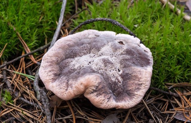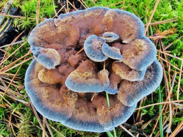 - Hydnellum rostig, die die gleiche unebene Oberfläche der Kappe hat, zuerst hellgrau, dann dunkelbraun, rostig. Es ist ein kleiner bis zu 10 cm hoher Pilz, der in Kiefernwäldern wächst. Das Bein kann vollständig in Moos- oder Fichtenbett eingegraben werden. Hericium rusty bekommt mit zunehmendem Alter einen rostigen Farbton.