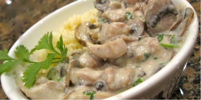 - Nachdem die Pilze eine goldene Farbe angenommen haben, Sahne und Gewürze hinzufügen, abdecken und 8-10 Minuten köcheln lassen.