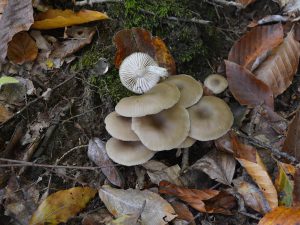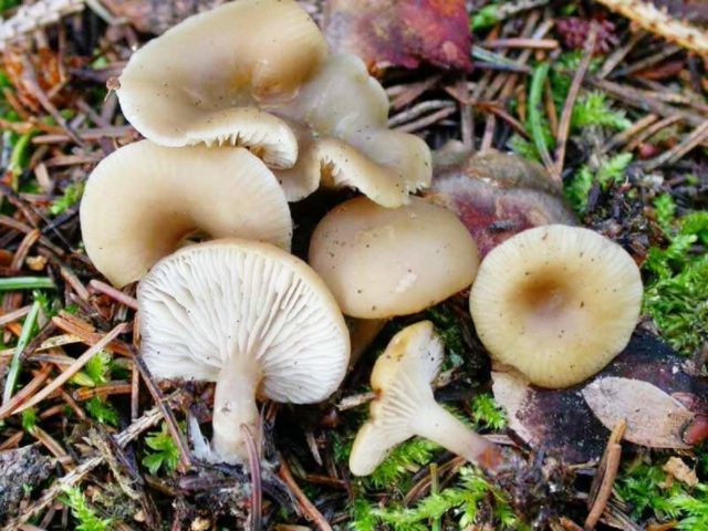 Junge Früchte haben eine konvexe Kappe, die sich im Laufe der Zeit in eine flache verwandelt und dann eine trichterartige Form annimmt. Sein Durchmesser überschreitet 5 cm nicht. Er zeichnet sich durch eine helle Farbe mit blassen Tönen aus. Der Farbton kann gleichmäßig oder mit braunen Flecken sein.
