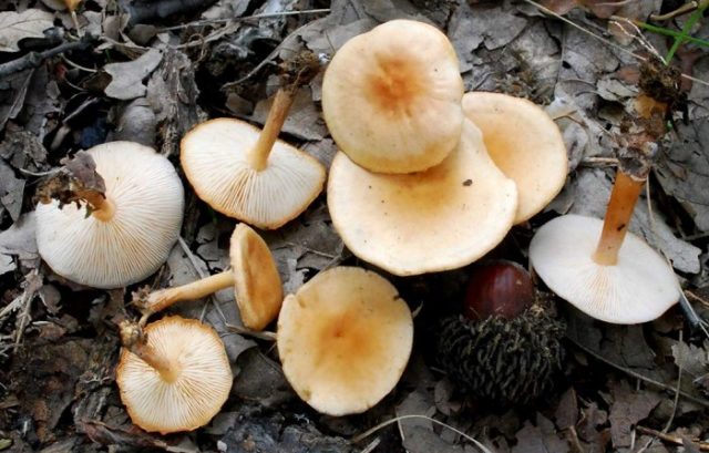 Ungenießbare Pilze haben einen unangenehmen sauren Geruch, der an verdorbenen Kohl erinnert. Ihre Teller sind gelb, verdunkeln sich mit der Zeit, manchmal ganz schwarz.