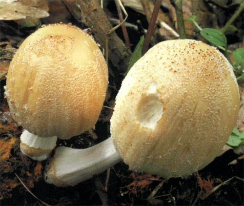 Es ist ein kleiner Pilz, dessen Länge 4 cm nicht überschreitet. Die Kappe ist glockenförmig mit nach unten gerichteten Kanten. Bei jungen Exemplaren findet sich eine eiförmige Kappe. Sein Durchmesser und seine Höhe überschreiten 3 cm nicht. Die Hautfarbe ist schmutzig gelb oder braun, in der Mitte intensiver als am Rand. Die Oberfläche der Kappe ist mit kleinen glänzenden Schuppen bedeckt, die leicht von Sedimenten abgewaschen werden können. Die Kanten der Kappe sind mehr gerippt als die Mitte, sie können gleichmäßig oder zerrissen sein.