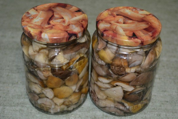 Eine ausgezeichnete Lagermethode ist das Beizen. Diese Option eignet sich auch für Regenschirme. Große Proben werden nach dem Einweichen geschnitten, kleine bleiben intakt.