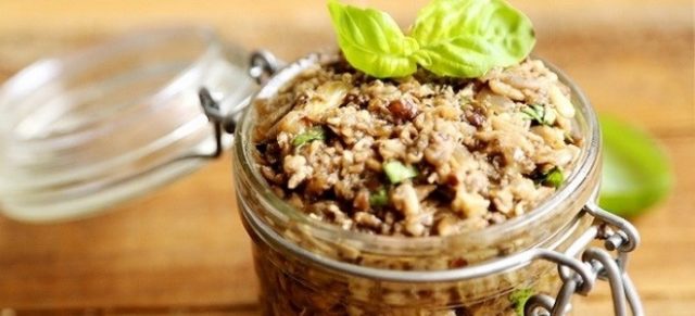 - Legen Sie das Werkstück in gedämpfte Behälter, gießen Sie das Fett, in das die Regenschirme gedünstet wurden, und verschließen Sie es mit Plastikdeckeln.