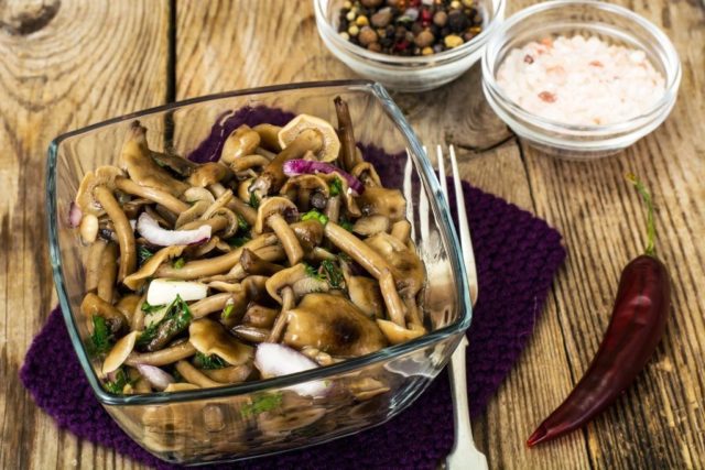 - Nach 30 Minuten die fertige eingelegte Zwiebel mit den Pilzen mischen und etwas Pflanzenöl hinzufügen.