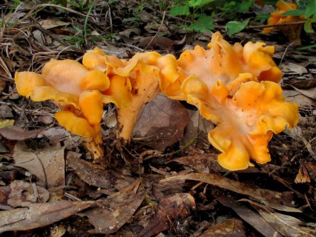 Der Speisepilz der Pfifferlingsfamilie ähnelt dem Pfifferling. Es hat einen kappenbeinigen Fruchtkörper mit einem welligen Oberteil und einem glatten absteigenden Hymenophor. Die Kappe kann einen Durchmesser von 10 cm erreichen. Das Fruchtfleisch hat eine dichte Konsistenz, die für ihren angenehmen Geruch und Geschmack geschätzt wird.